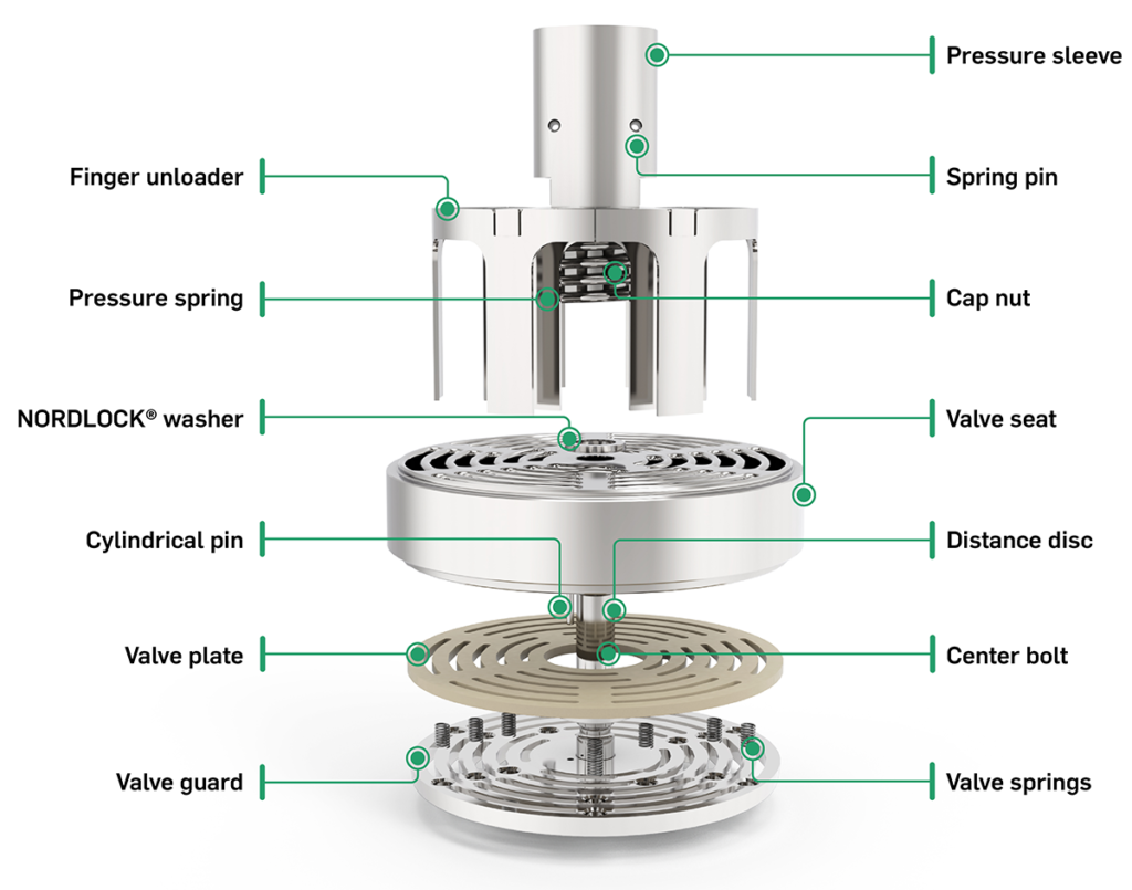 • 100% quality control: Every single non-metallic valve plate is leakage tested with a proprietary procedure